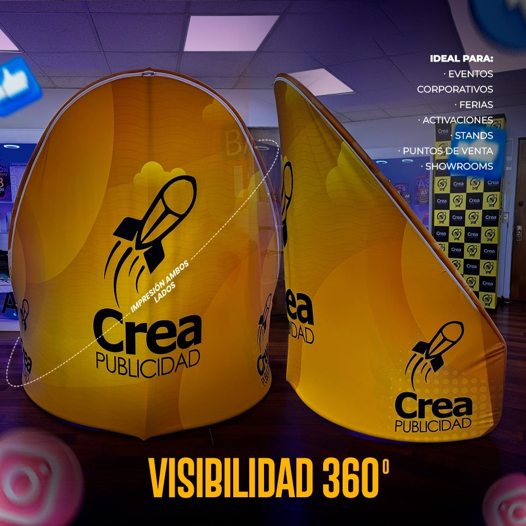 El Backing Isla 360° es una solución publicitaria profesional diseñada para entregar máxima visibilidad desde todos los ángulos. Gracias a su formato curvo y envolvente, permite que tu marca destaque de forma clara y atractiva en ferias, eventos corporativos, lanzamientos de productos y activaciones promocionales.Diseño envolvente con impacto visual
