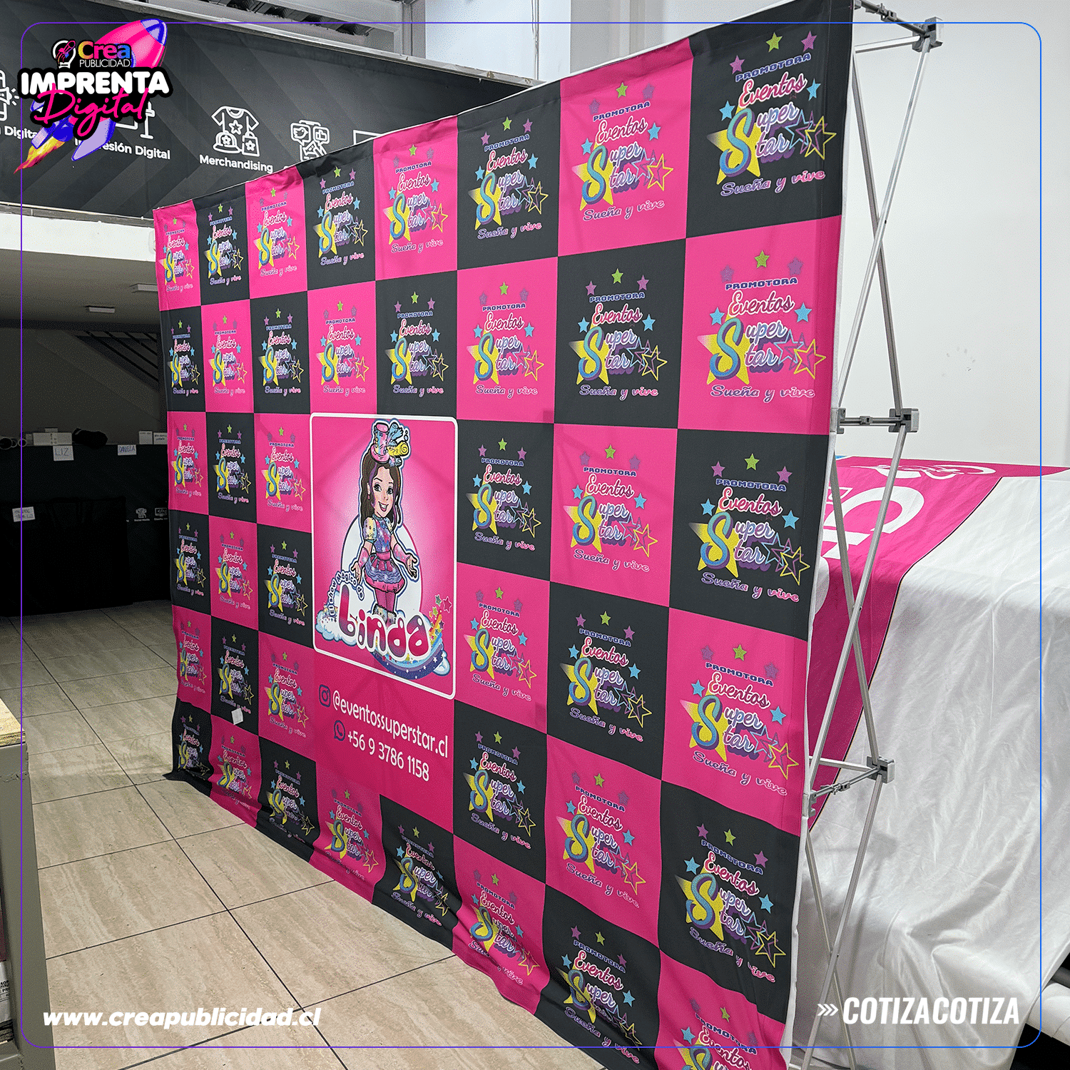 Incluye el diseño gráfico personalizado adaptado a la identidad visual de tu marca. Puedes enviar tu propio diseño o trabajar junto a nuestro equipo creativo.Beneficios del Panel Araña Textil