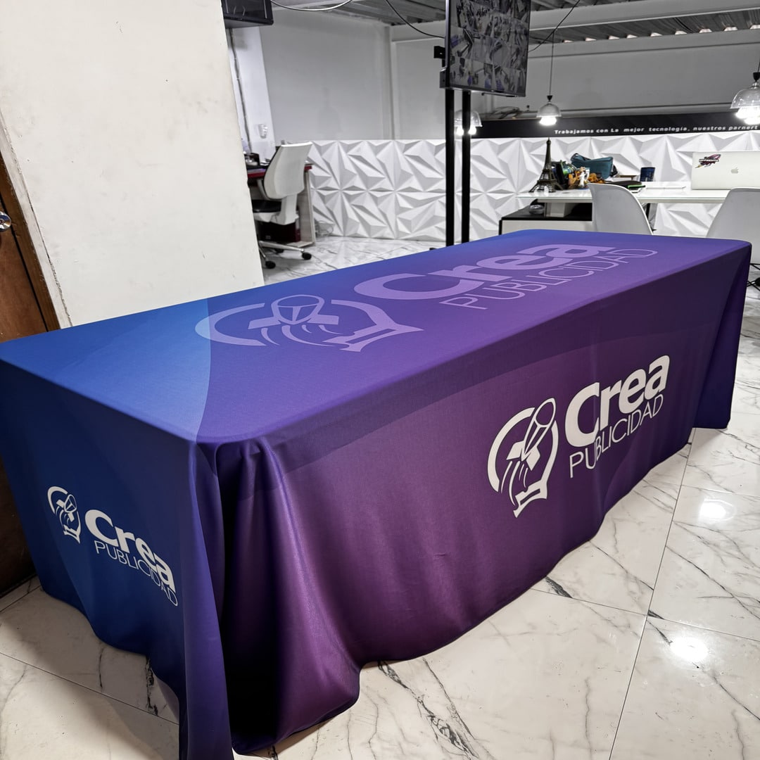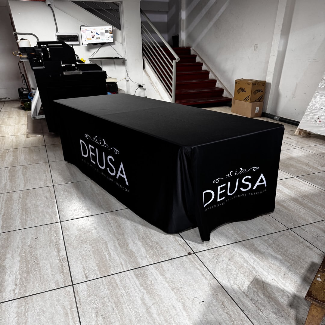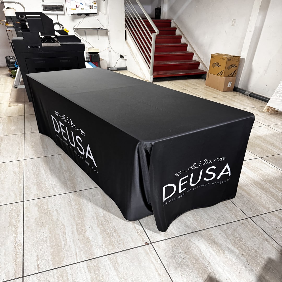 El mantel de tela display de 250 gramos ofrece una excelente presentación visual, con buena caída y terminaciones limpias, aportando una imagen profesional en cada evento. Es reutilizable, fácil de instalar y compatible con gráficas personalizadas.
