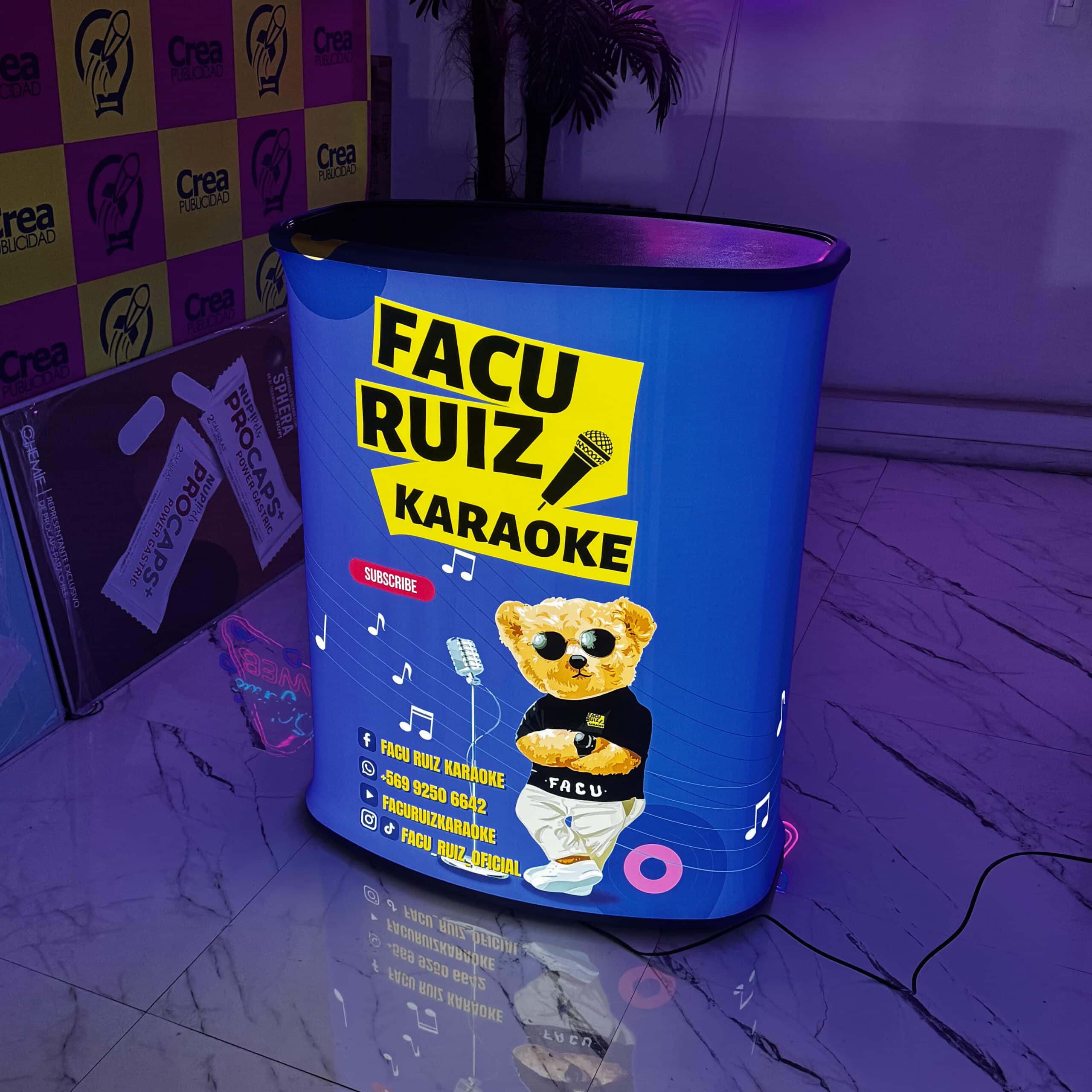 Impacta con diseño y funcionalidad. Este counter luminoso hexagonal es ideal para eventos, ferias y promociones. Su tela Blacklight iluminada resalta tu marca incluso en ambientes oscuros, creando una presentación profesional y llamativa.Iluminación LED con tela intercambiable