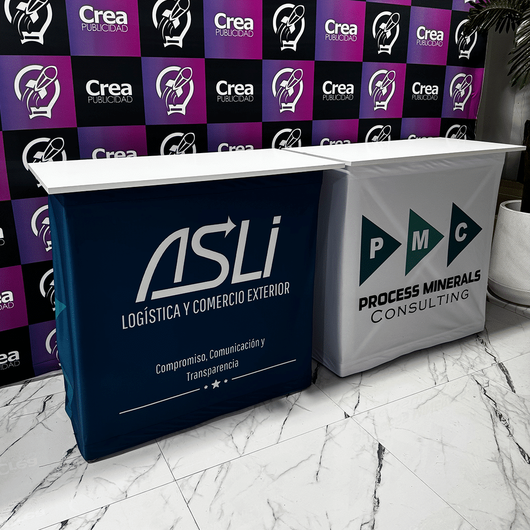 Con una medida total de 80×80 cm, este modelo ofrece una superficie suficiente para atención de clientes sin ocupar demasiado espacio. Es ideal para usar en stands pequeños o ferias donde el lugar es limitado, pero se requiere presencia de marca destacada.</pDespachos a domicilio en todo Chile por medio de Starken y Chilexpress.
